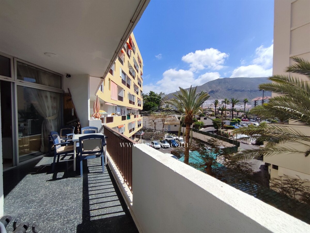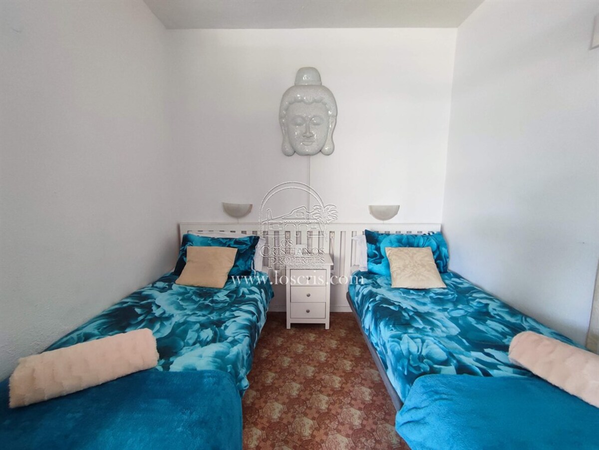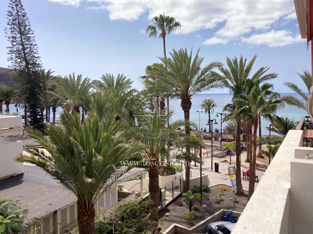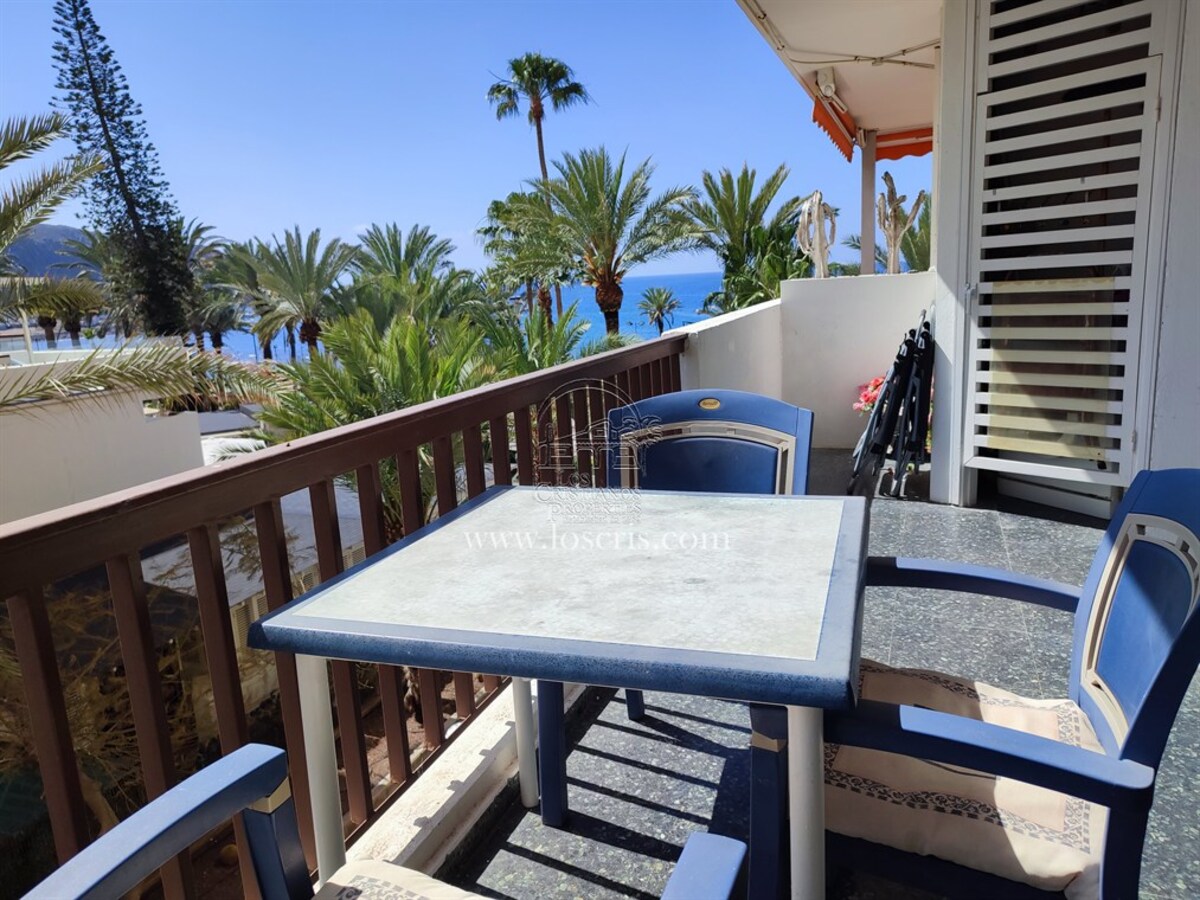 Studio-type apartment situated on the ground floor of a front-line complex in Los Cristianos. The studio is situated on the side of the complex, with an interior measurement of approx. 39,62 m² and comprises a bathroom and a separate kitchen leading onto the lounge/bedroom area. The sleeping area is partitioned off to give privacy from the rest of the lounge. The terrace measures approx. 11.85 m² and offers great sea views. The studio is sold fully furnished. This is a sought after complex, with alll ammentites close by and communal parking is available inside the complex accessed by remote control. There is a swimming pool on the complex and a sunbathing area.