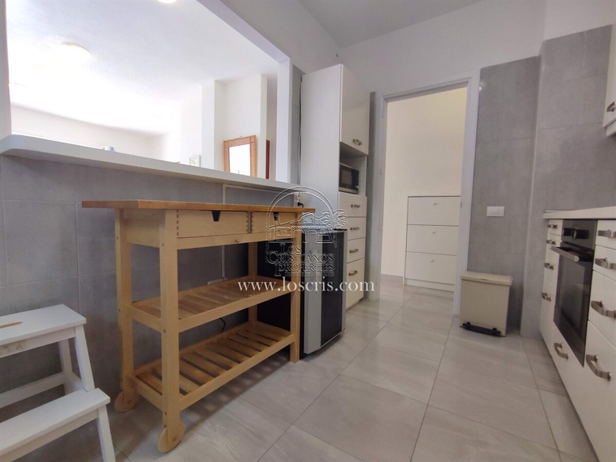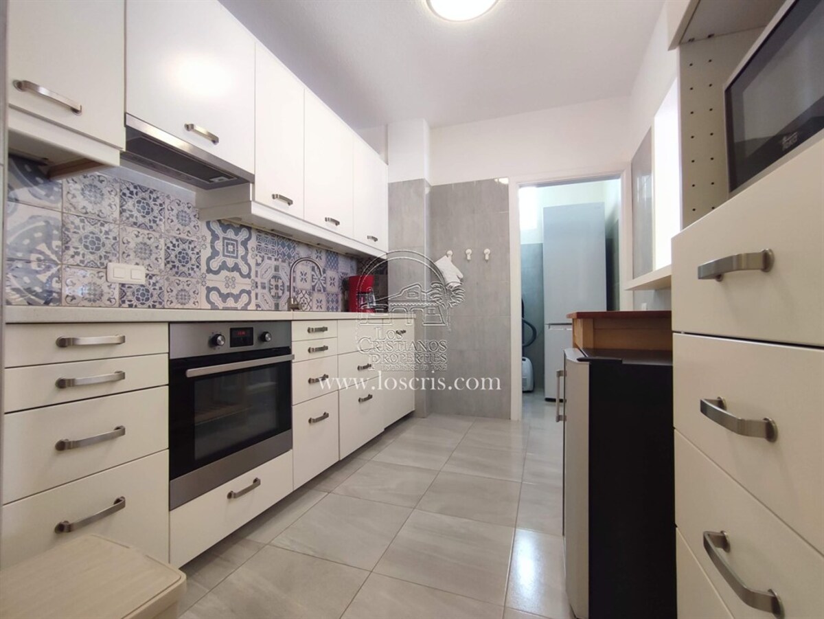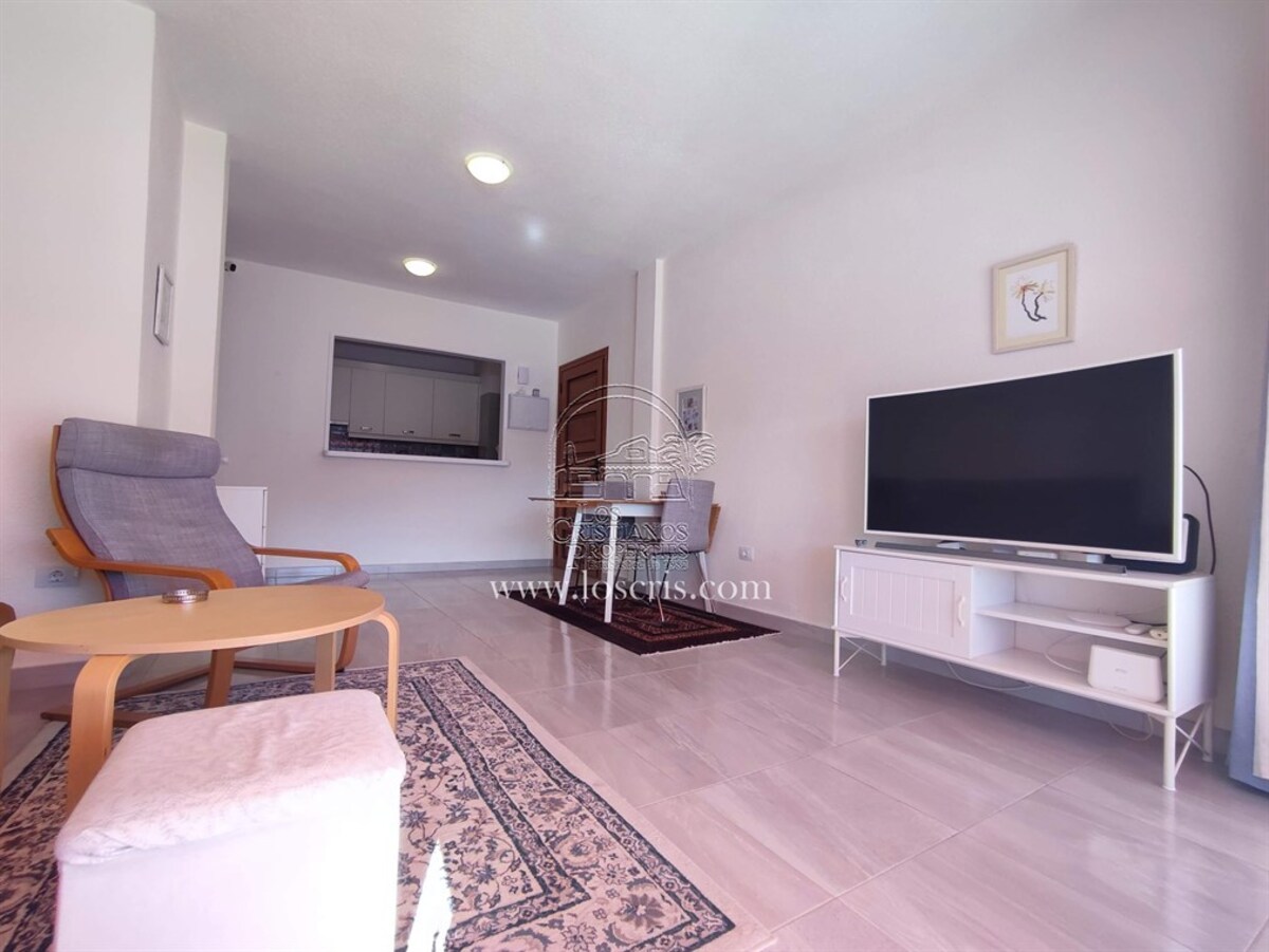 Bright and centrally located furnished apartment featuring 2 bedrooms, a newly renovated bathroom, lounge with dining area leading to spacious sunny open terrace with stunning Los Cristianos, mountain and partial sea views. The property offers a separate fully fitted kitchen with a utility room with a fridge/freezer, boiler and washing machine. Price includes a private locked garage in the secure underground parking — a valuable asset in such a central location, close to all amenities.