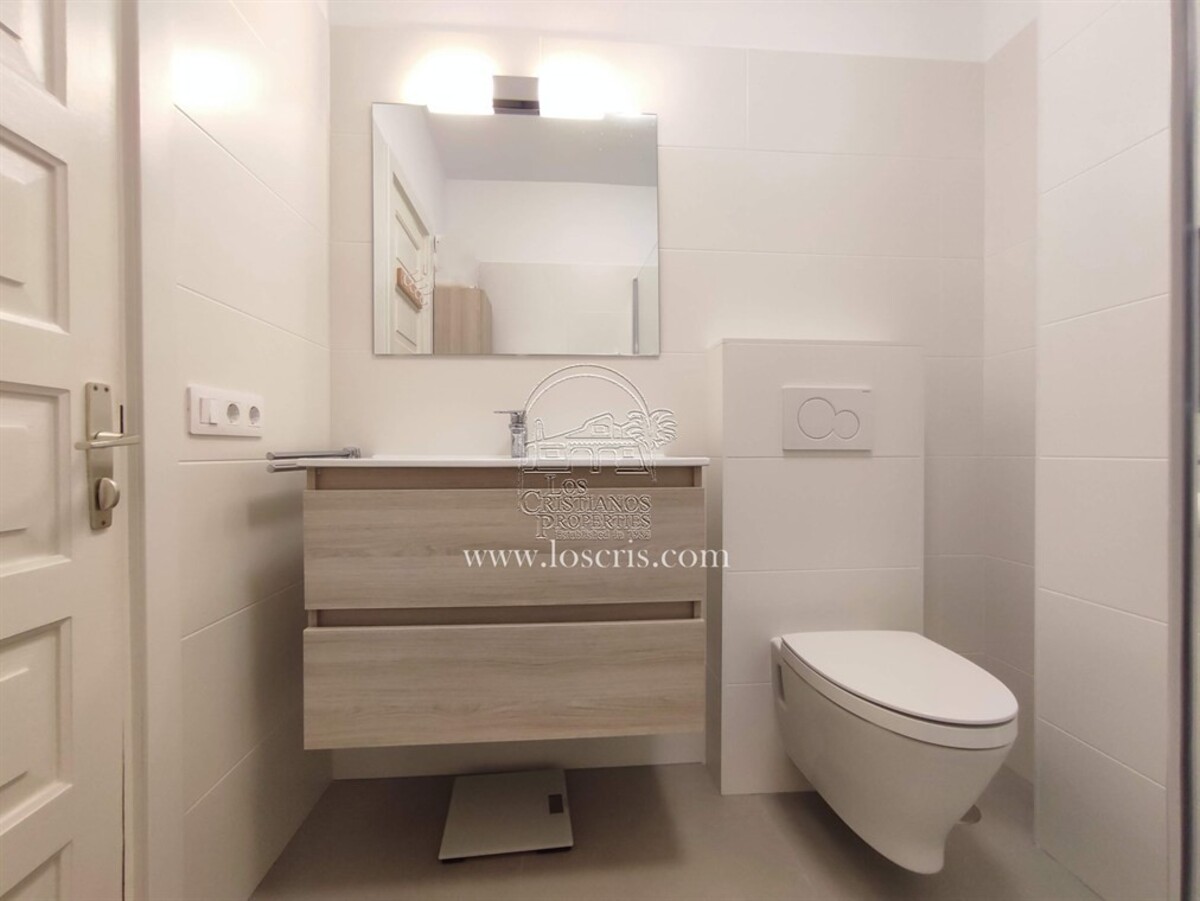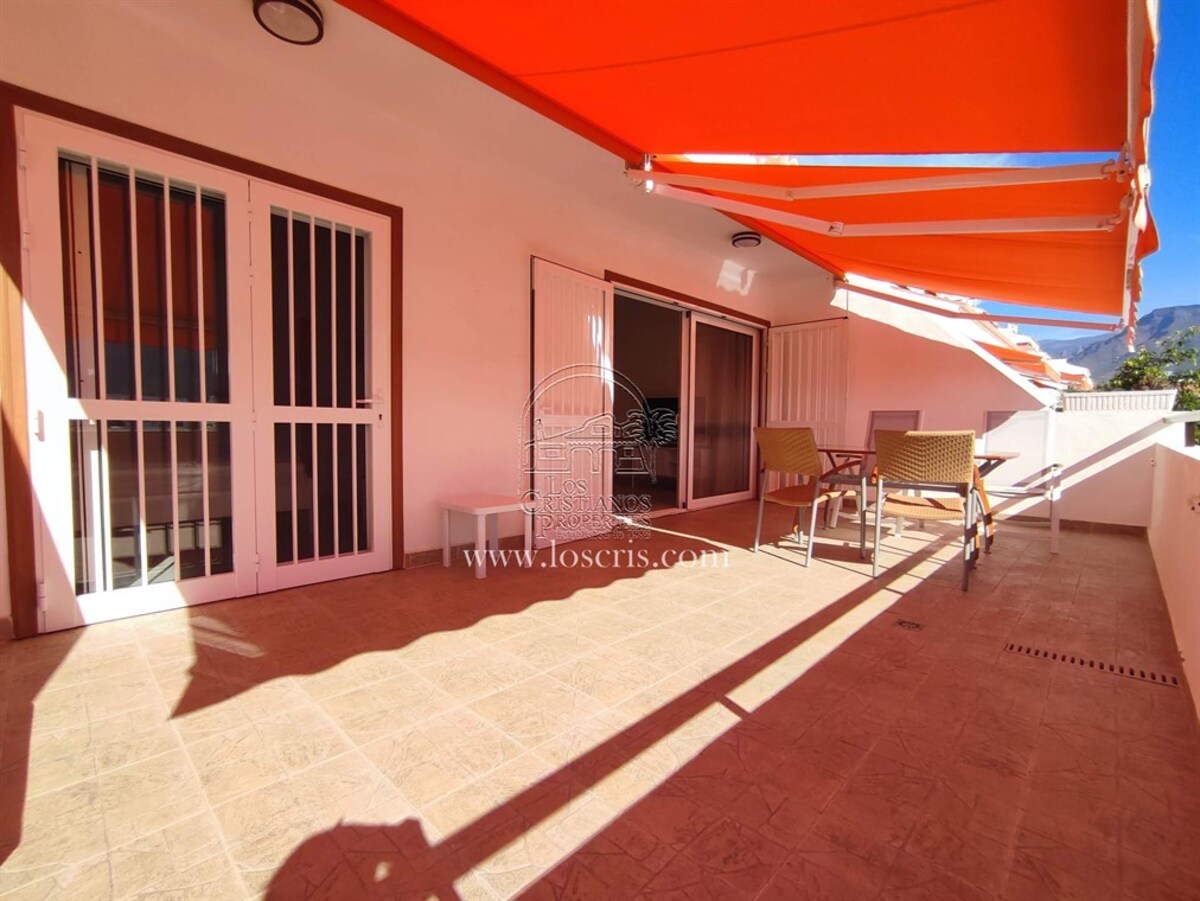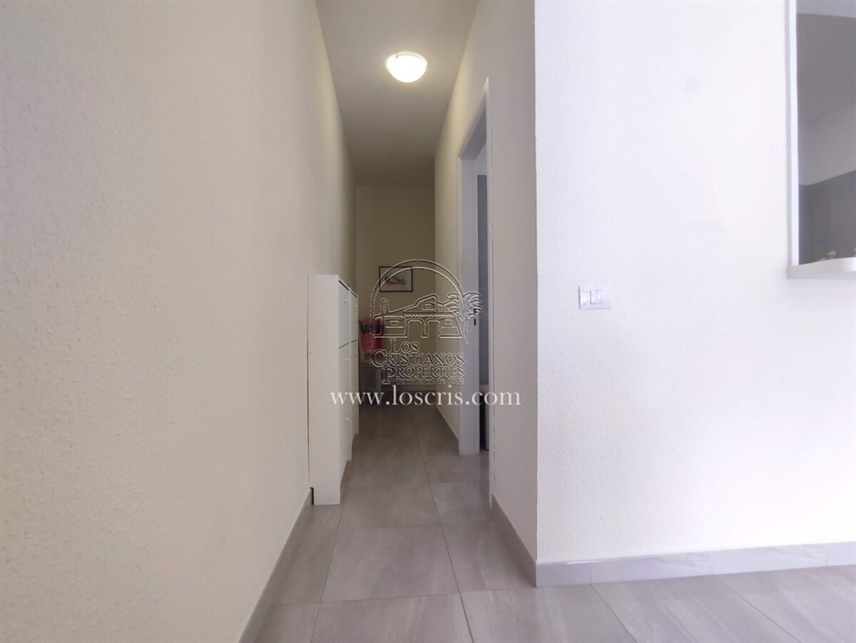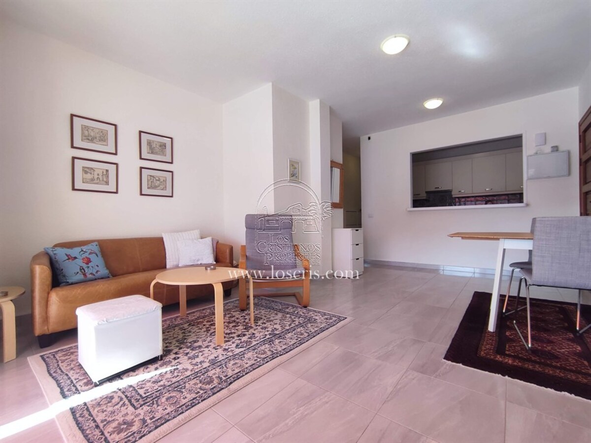 Bright and centrally located furnished apartment featuring 2 bedrooms, a newly renovated bathroom, lounge with dining area leading to spacious sunny open terrace with stunning Los Cristianos, mountain and partial sea views. The property offers a separate fully fitted kitchen with a utility room with a fridge/freezer, boiler and washing machine. Price includes a private locked garage in the secure underground parking — a valuable asset in such a central location, close to all amenities.