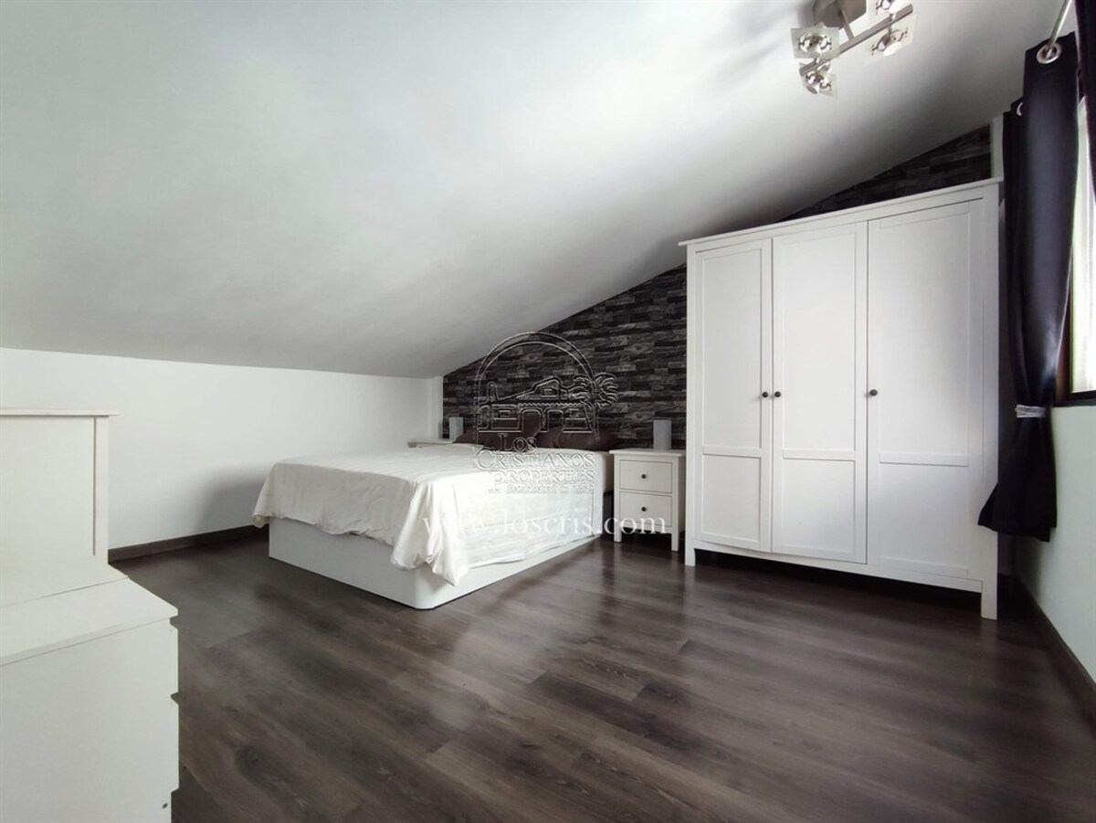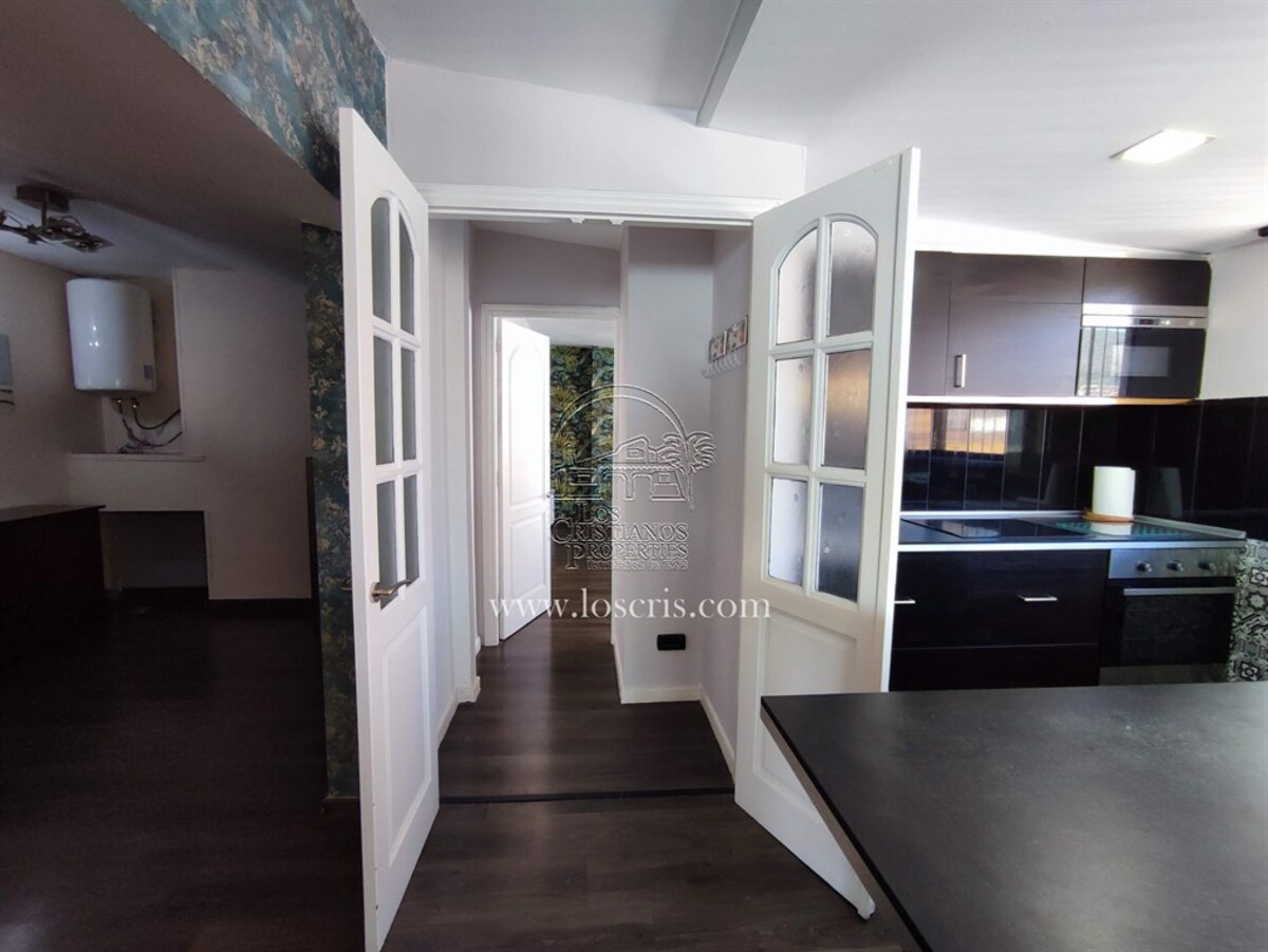 This is a very rare apartment, being located right in the centre of Los Cristianos and having three spacious bedrooms! The apartment also has two luxurious bathrooms and a large lounge and open-plan, modern spacious kitchen. Being on the third floor of the complex, it boasts partial sea views and you can see the rest of Los Cristianos. There is a huge terrace which has been nicely furnished with relaxing chairs. The whole apartment has been very tastefully renovated and is being sold partially furnished with good quality furniture. The main advantage with this apartment is the accessibility to the beach, shops and restaurants.