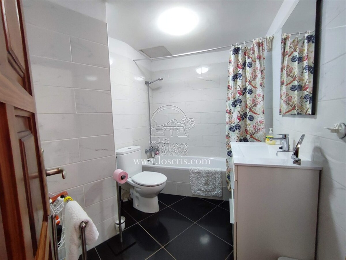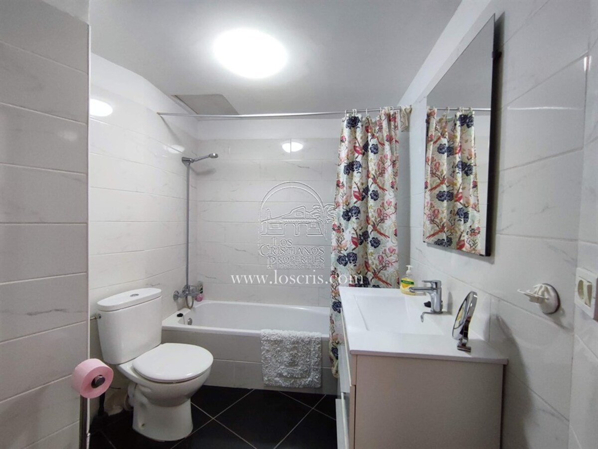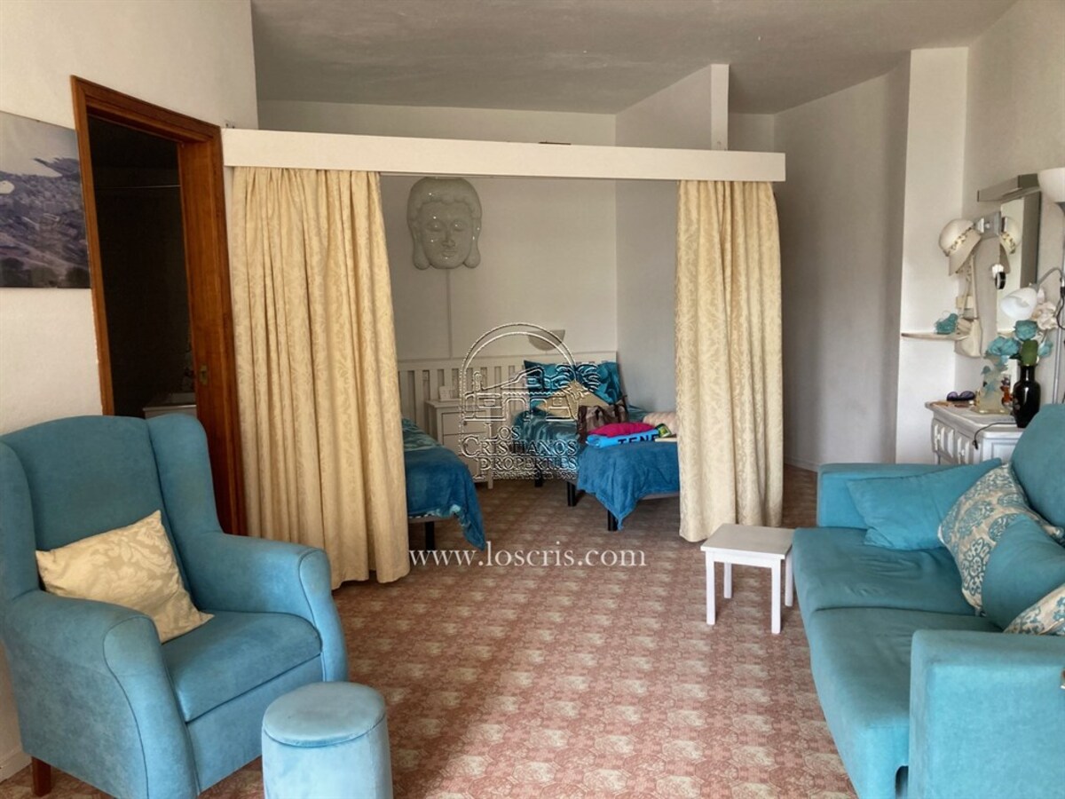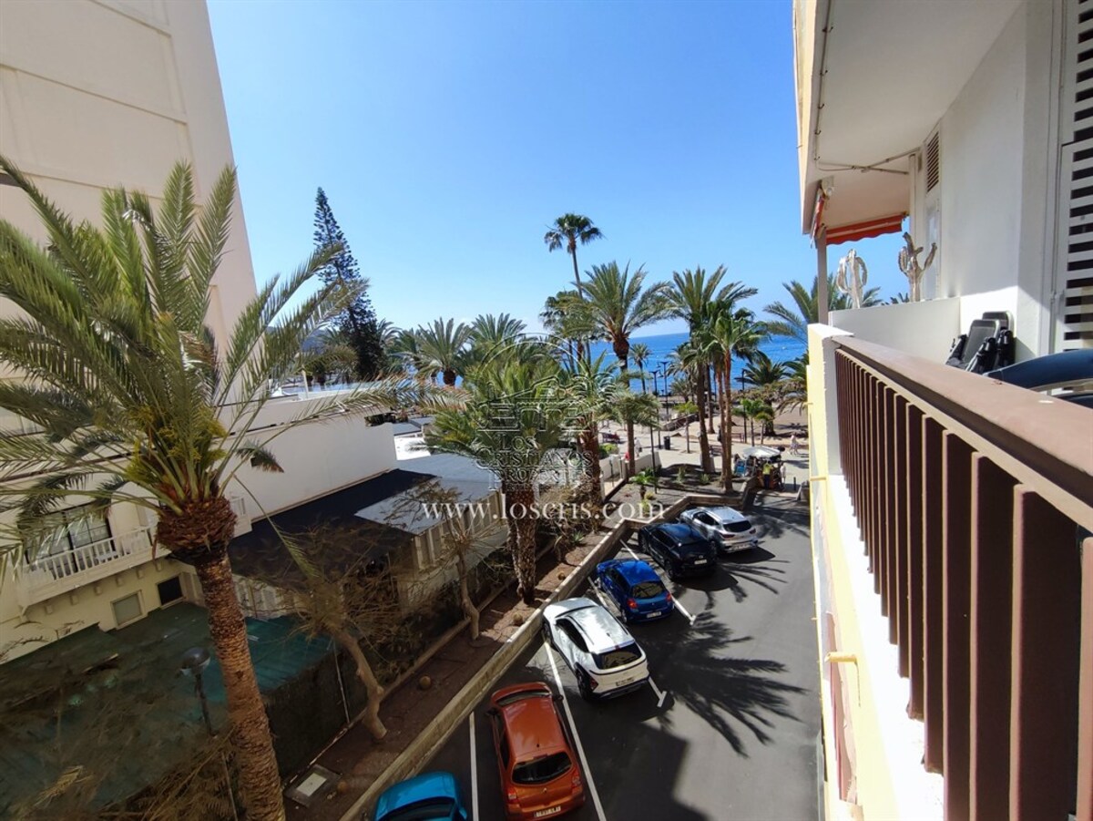 Studio-type apartment situated on the ground floor of a front-line complex in Los Cristianos. The studio is situated on the side of the complex, with an interior measurement of approx. 39,62 m² and comprises a bathroom and a separate kitchen leading onto the lounge/bedroom area. The sleeping area is partitioned off to give privacy from the rest of the lounge. The terrace measures approx. 11.85 m² and offers great sea views. The studio is sold fully furnished. This is a sought after complex, with alll ammentites close by and communal parking is available inside the complex accessed by remote control. There is a swimming pool on the complex and a sunbathing area.