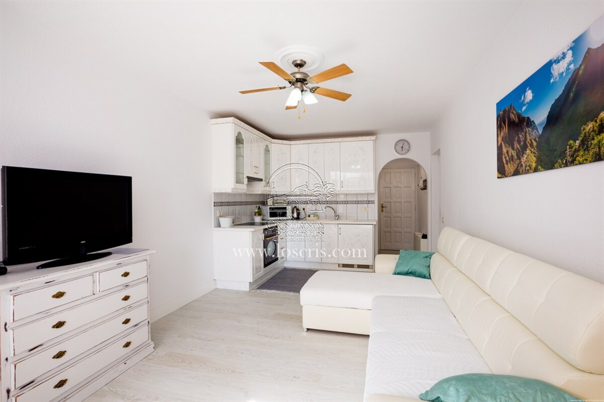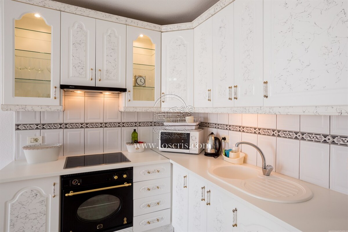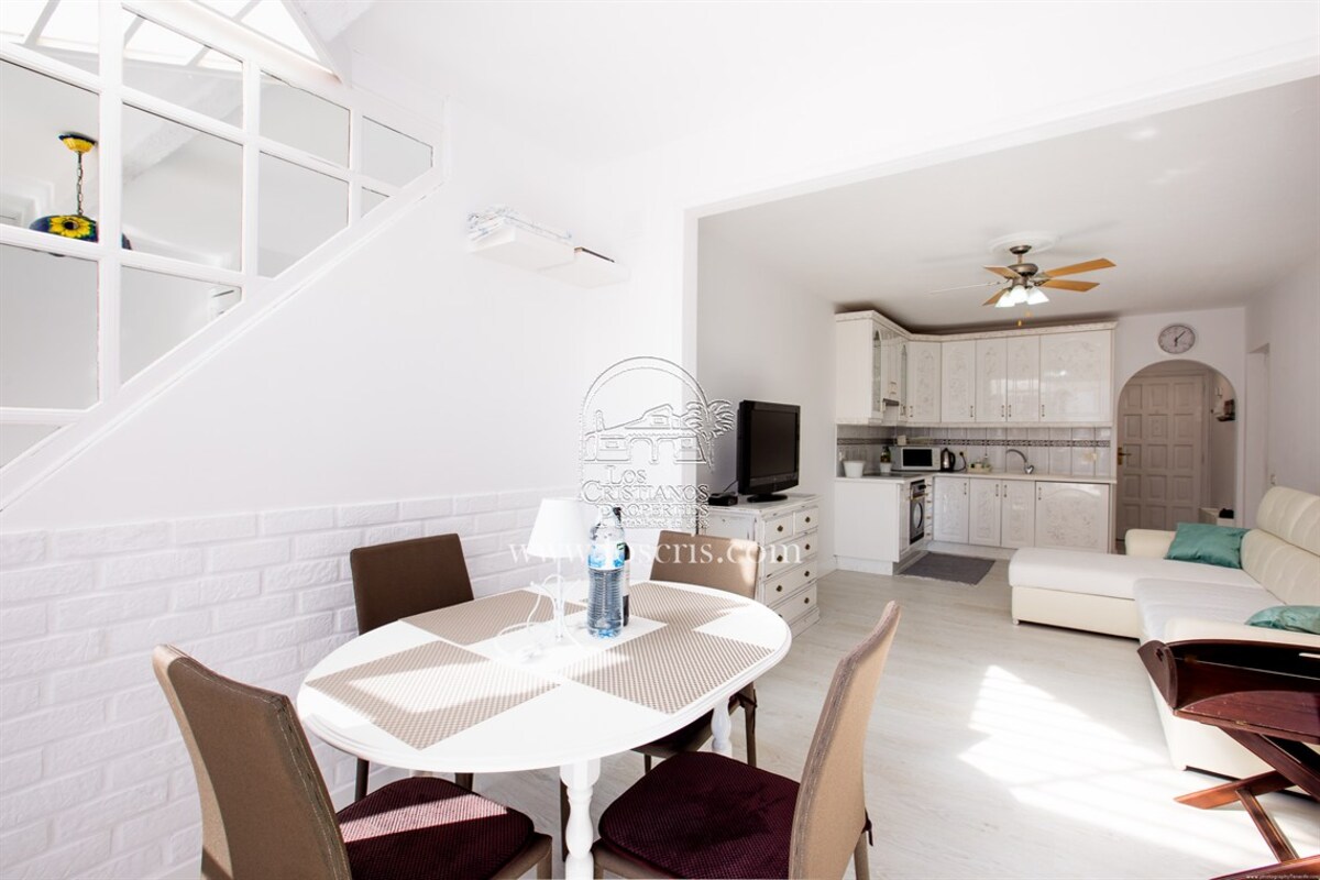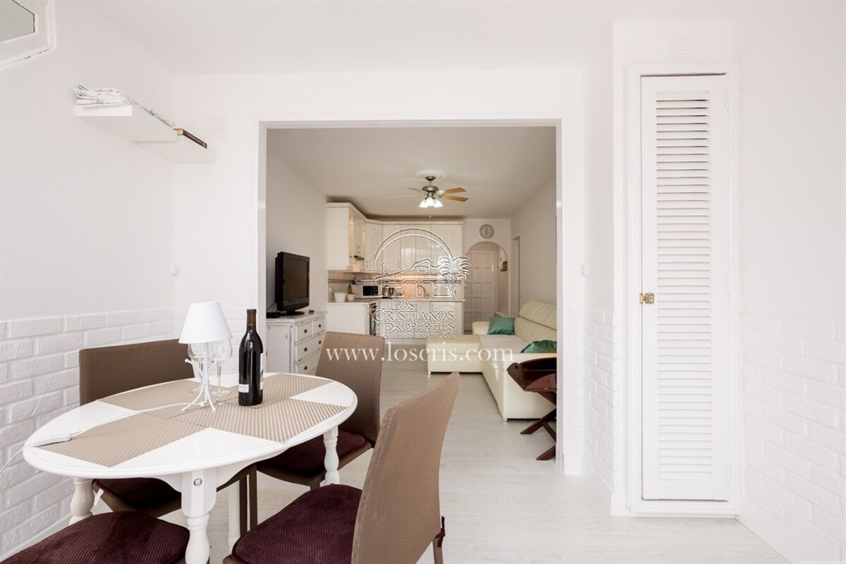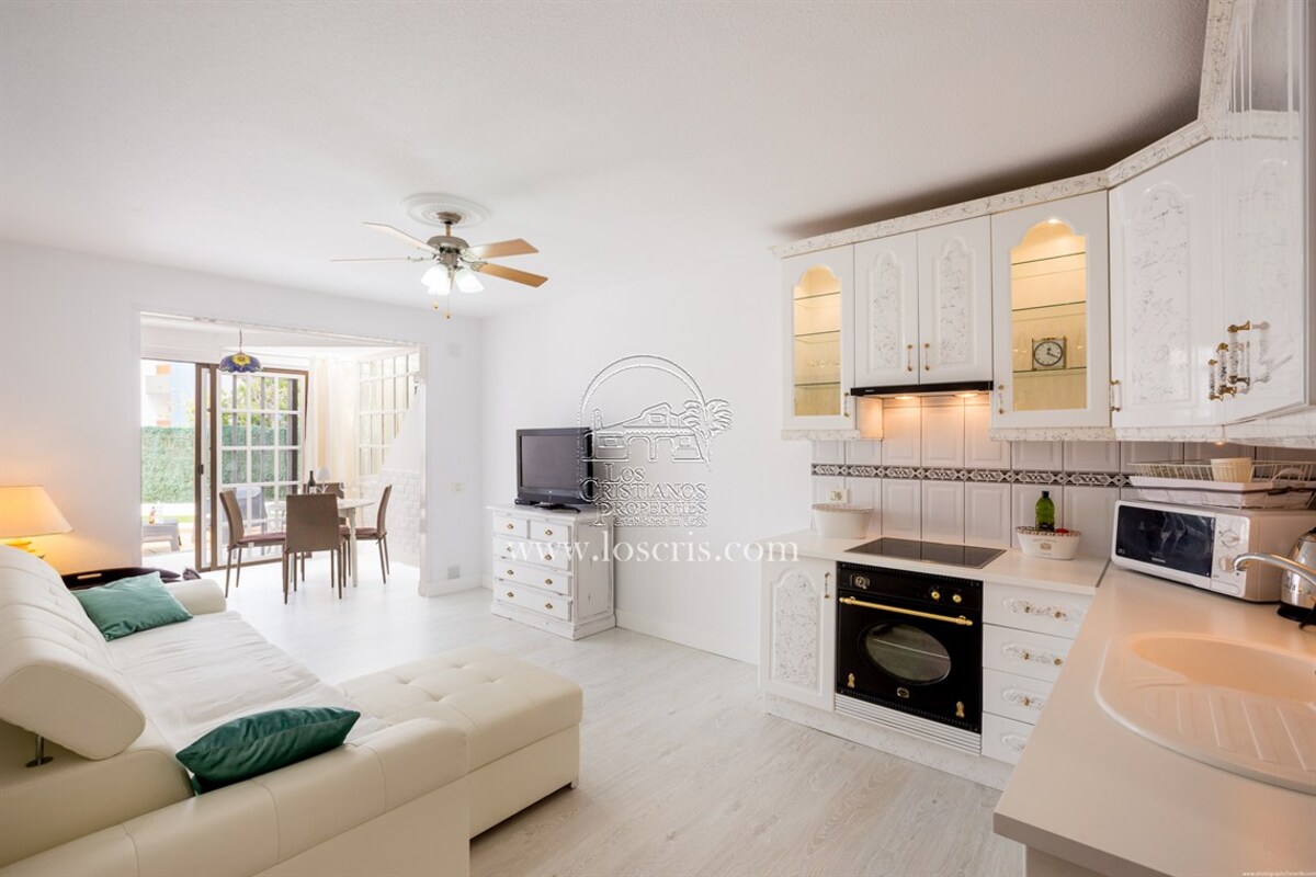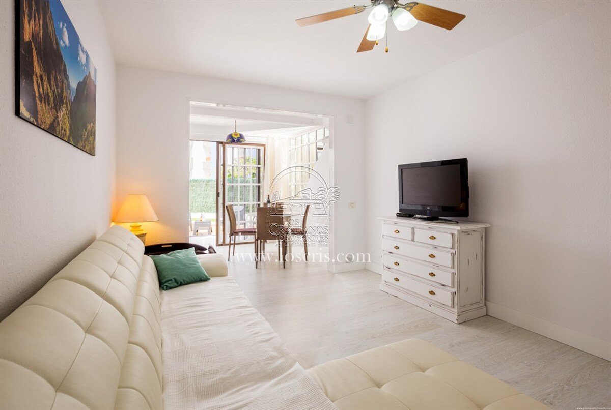 EXCLUSIVE! Bright ground floor apartment with 1 bedroom apartment in Los Diamantes with two terraces. The bedroom opens via patio doors onto a private terrace with pool views, while the open -plan, fully fitted kitchen/ lounge leads to a dining area with patio doors ( which has been used from some of the outside space) to a large sunny terrace with partial sea views.Sold furnished.