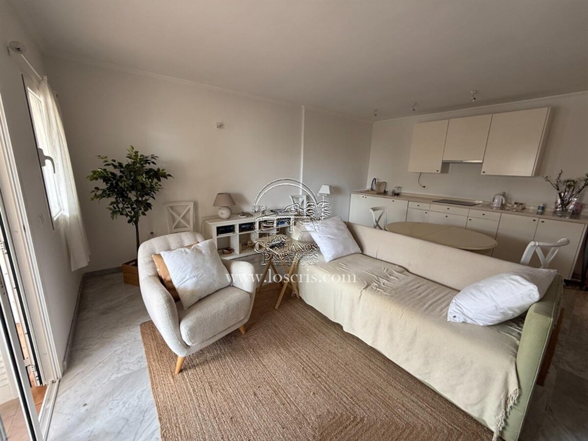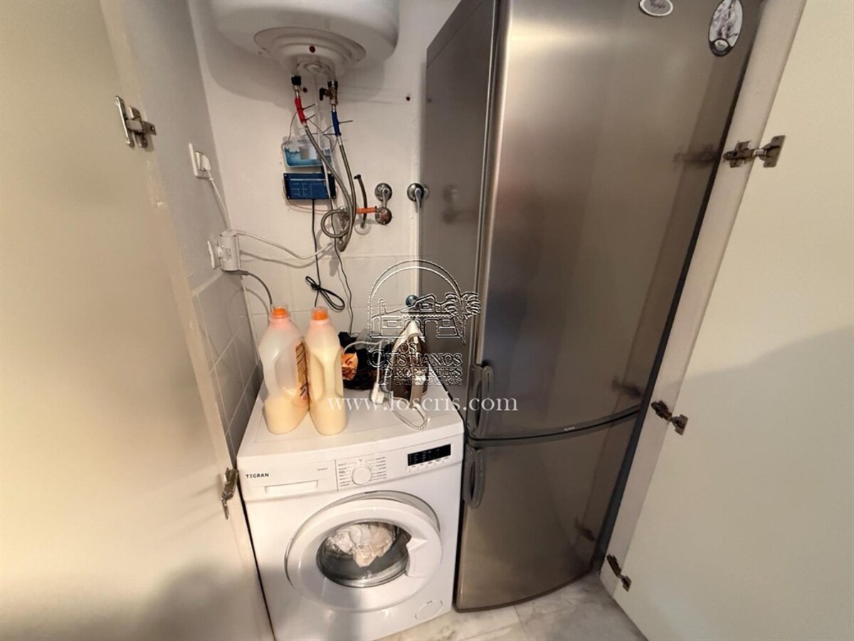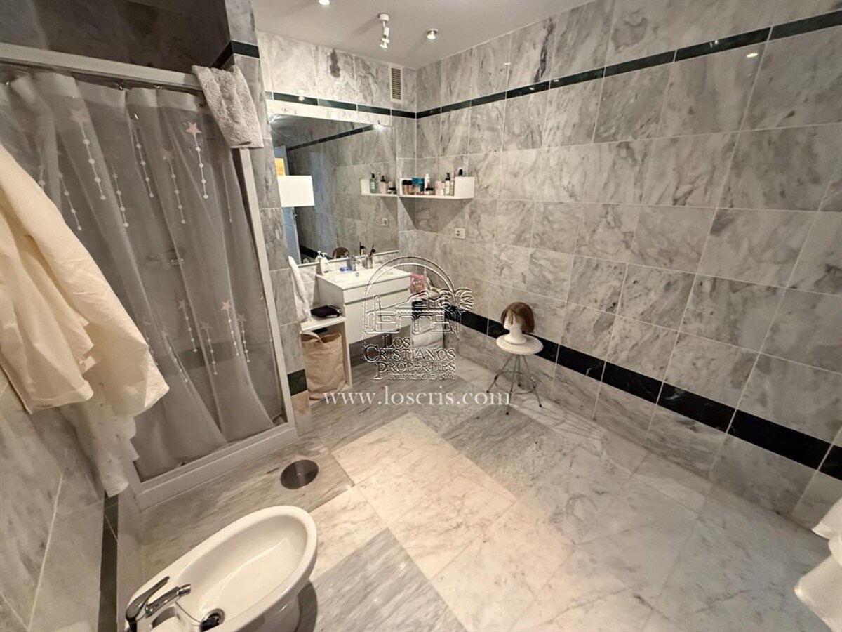 Well maintained 1st floor apartment on a sought after complex in Los Cristianos. One bedroom with fitted wardrobes, shower-room, storage cupboard with washing machine , new fully fitted kitchen, lounge with sofa bed ,dining area with patio doors leading to a spacious covered terrace with street views. Sold fully furnished with quality fixtures and fittings.The complex has a heated pool and each owner is allocated 2 sunbeds and 1 umberella.