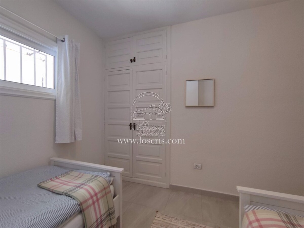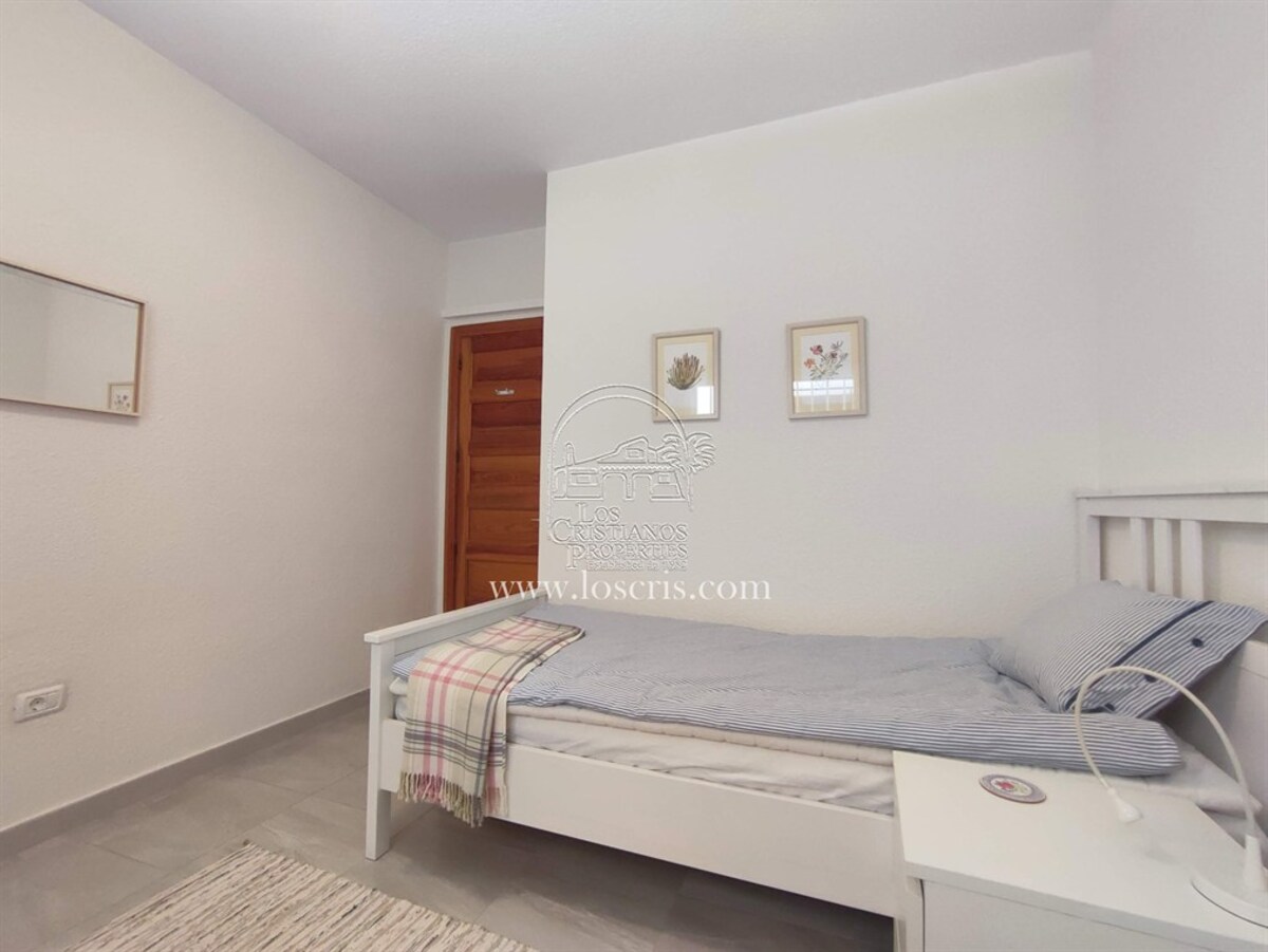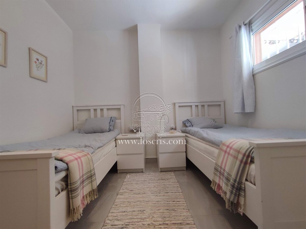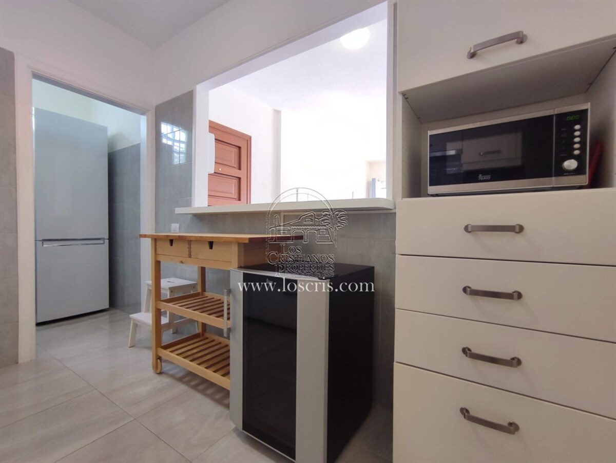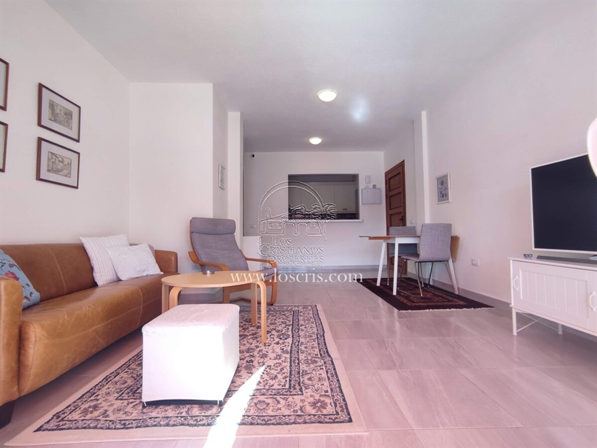Bright and centrally located furnished apartment featuring 2 bedrooms, a newly renovated bathroom, lounge with dining area leading to spacious sunny open terrace with stunning Los Cristianos, mountain and partial sea views. The property offers a separate fully fitted kitchen with a utility room with a fridge/freezer, boiler and washing machine. Price includes a private locked garage in the secure underground parking — a valuable asset in such a central location, close to all amenities.