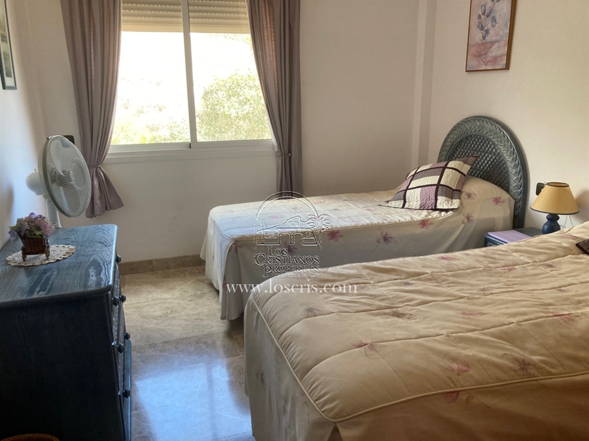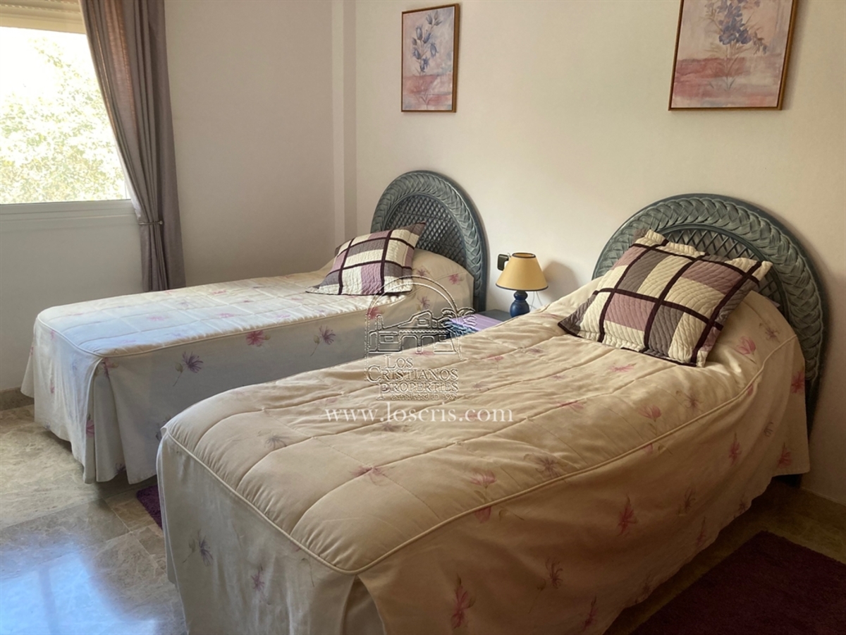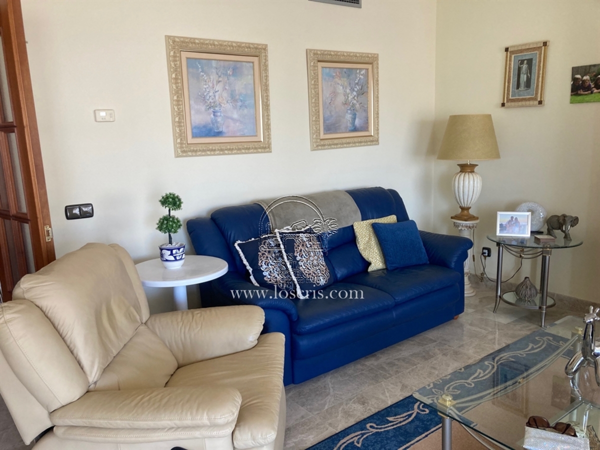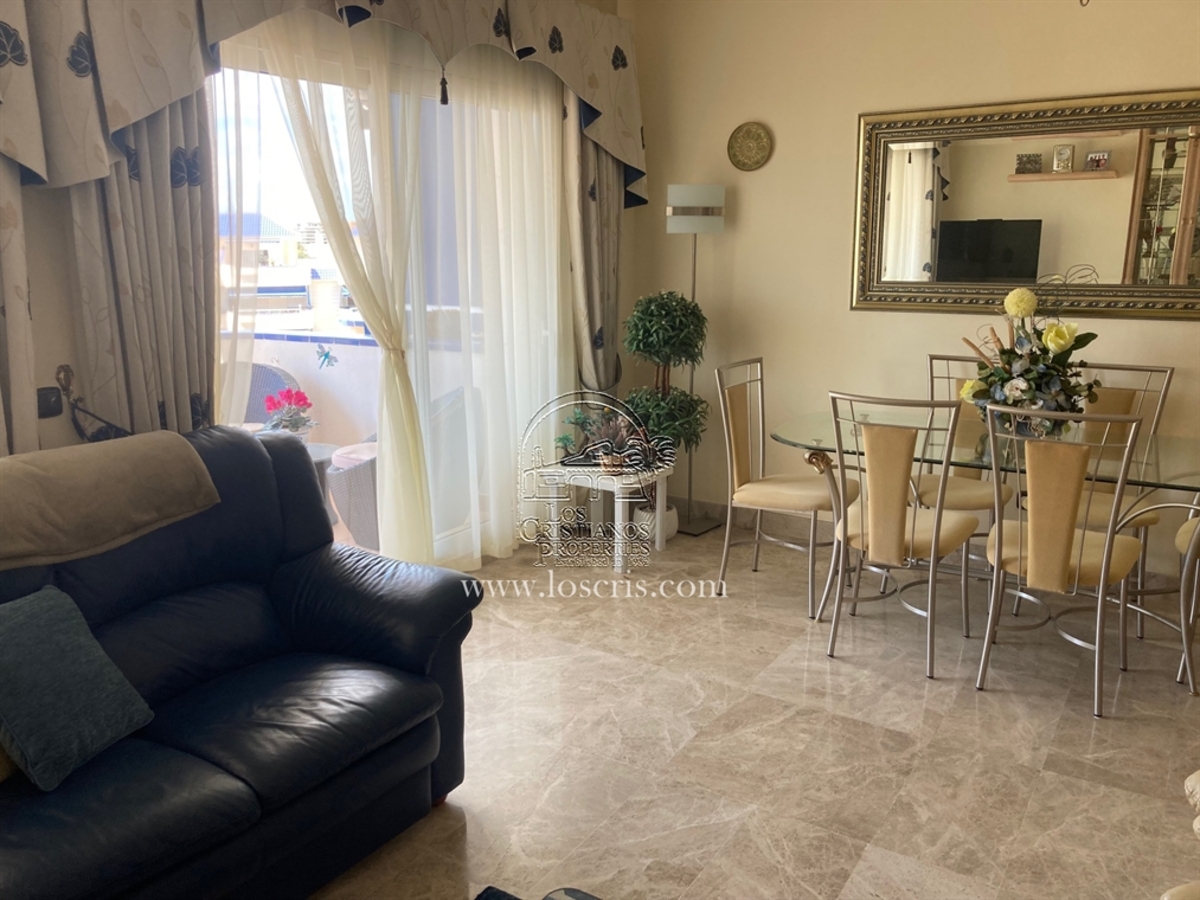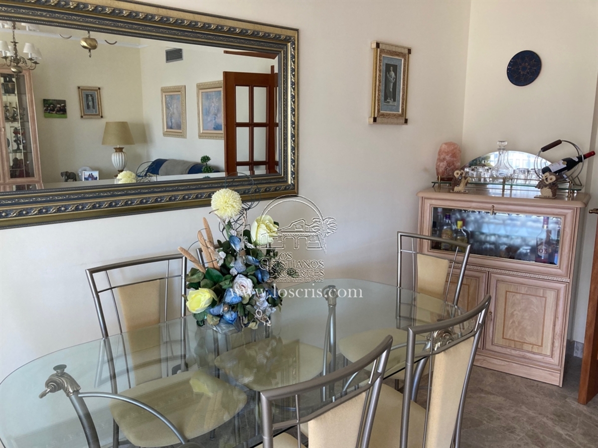 Beautiful apartment which comprises of 3 bedrooms with fitted wardrobes and 2 bathrooms (one en suite), a fully fitted and equipped kitchen and a small utility area. There is a very large and bright living/dining area with access to the terrace that has sea views to one side and garden and pool from the other. This complex has a heated pool, beautiful gardens and apartment enjoys good afternoon sun. Private parking and storage room included in the price. The apartment is sold furnished, all of which is modern and of good quality.This property offers marble floors, video entry, electric shutters and air-conditioning in the lounge and bedrooms. Great family home or holiday residence.
