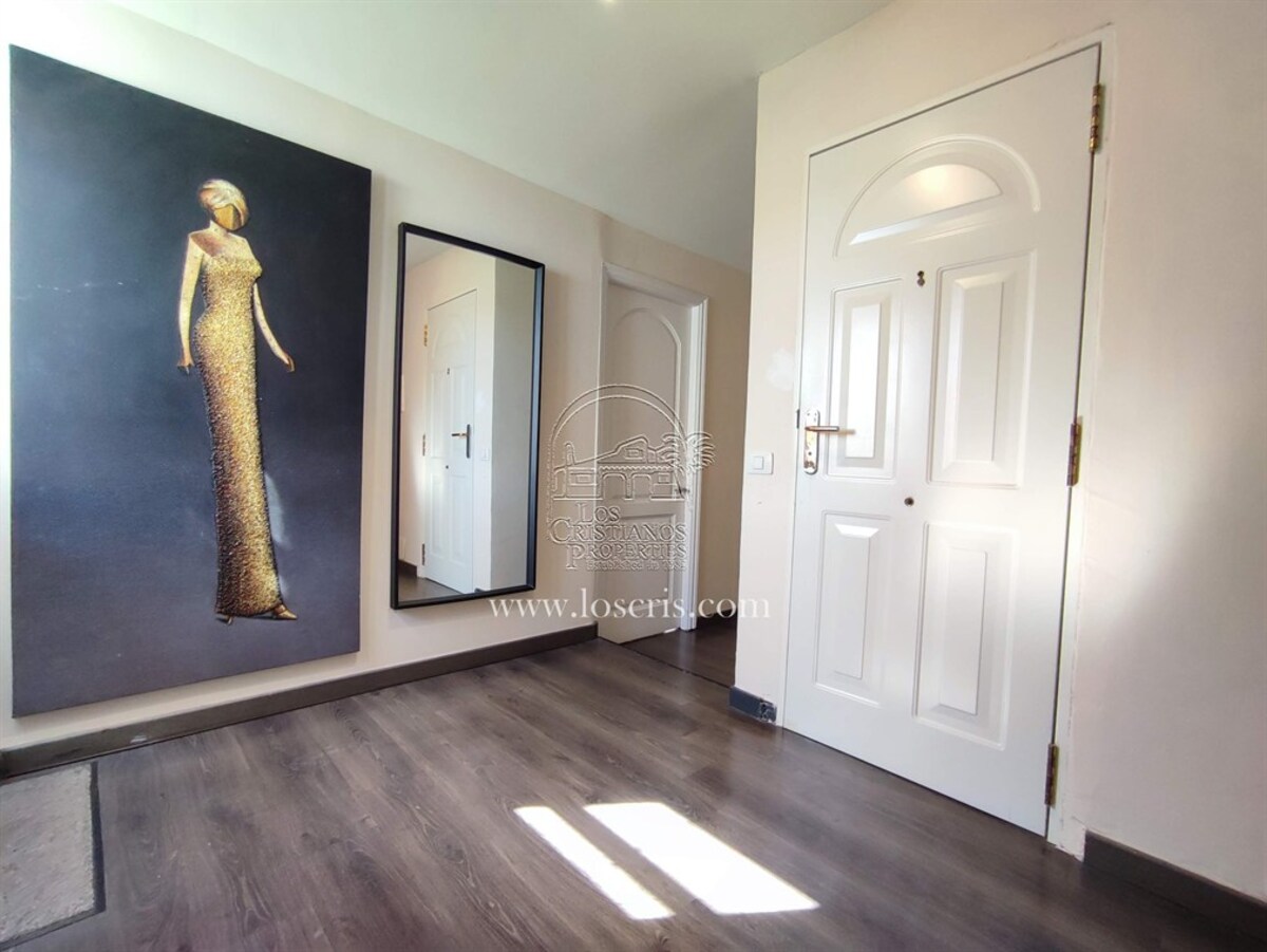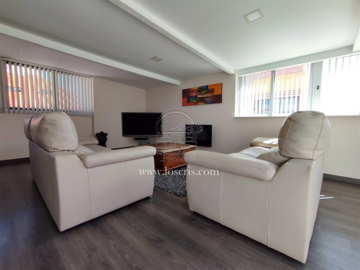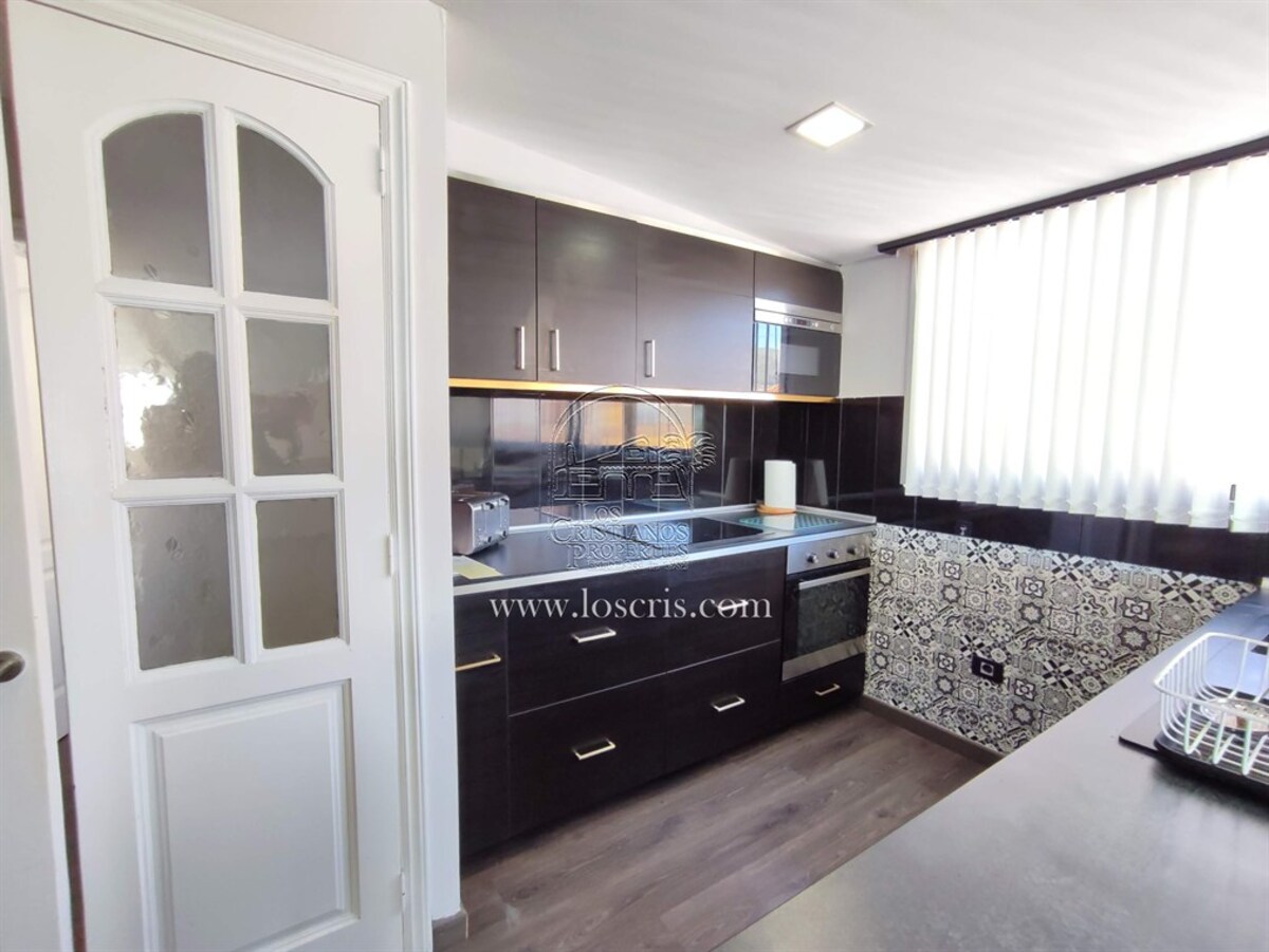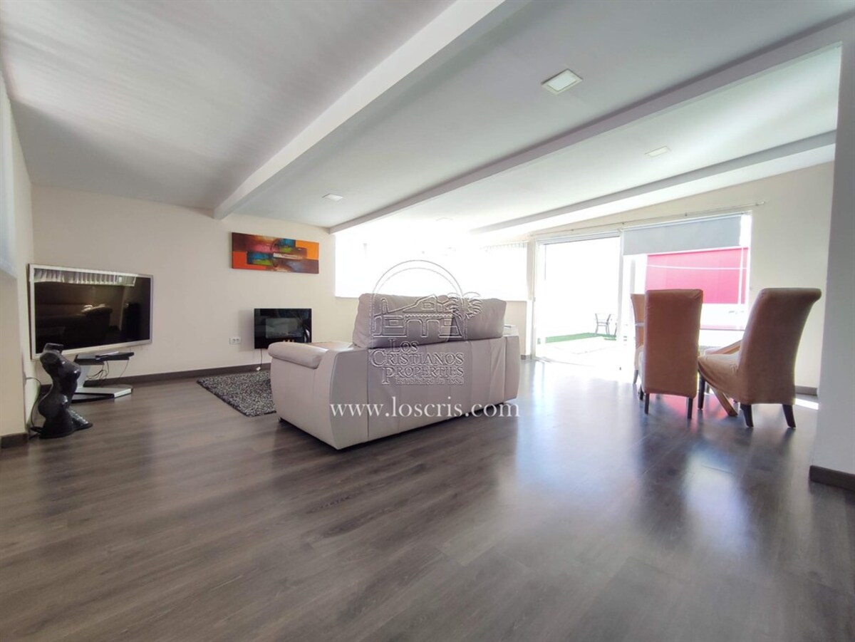 This is a very rare apartment, being located right in the centre of Los Cristianos and having three spacious bedrooms! The apartment also has two luxurious bathrooms and a large lounge and open-plan, modern spacious kitchen. Being on the third floor of the complex, it boasts partial sea views and you can see the rest of Los Cristianos. There is a huge terrace which has been nicely furnished with relaxing chairs. The whole apartment has been very tastefully renovated and is being sold partially furnished with good quality furniture. The main advantage with this apartment is the accessibility to the beach, shops and restaurants.