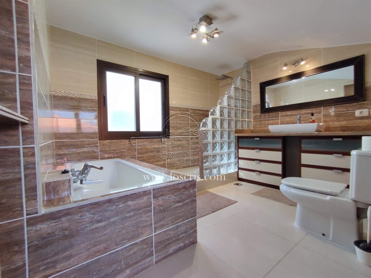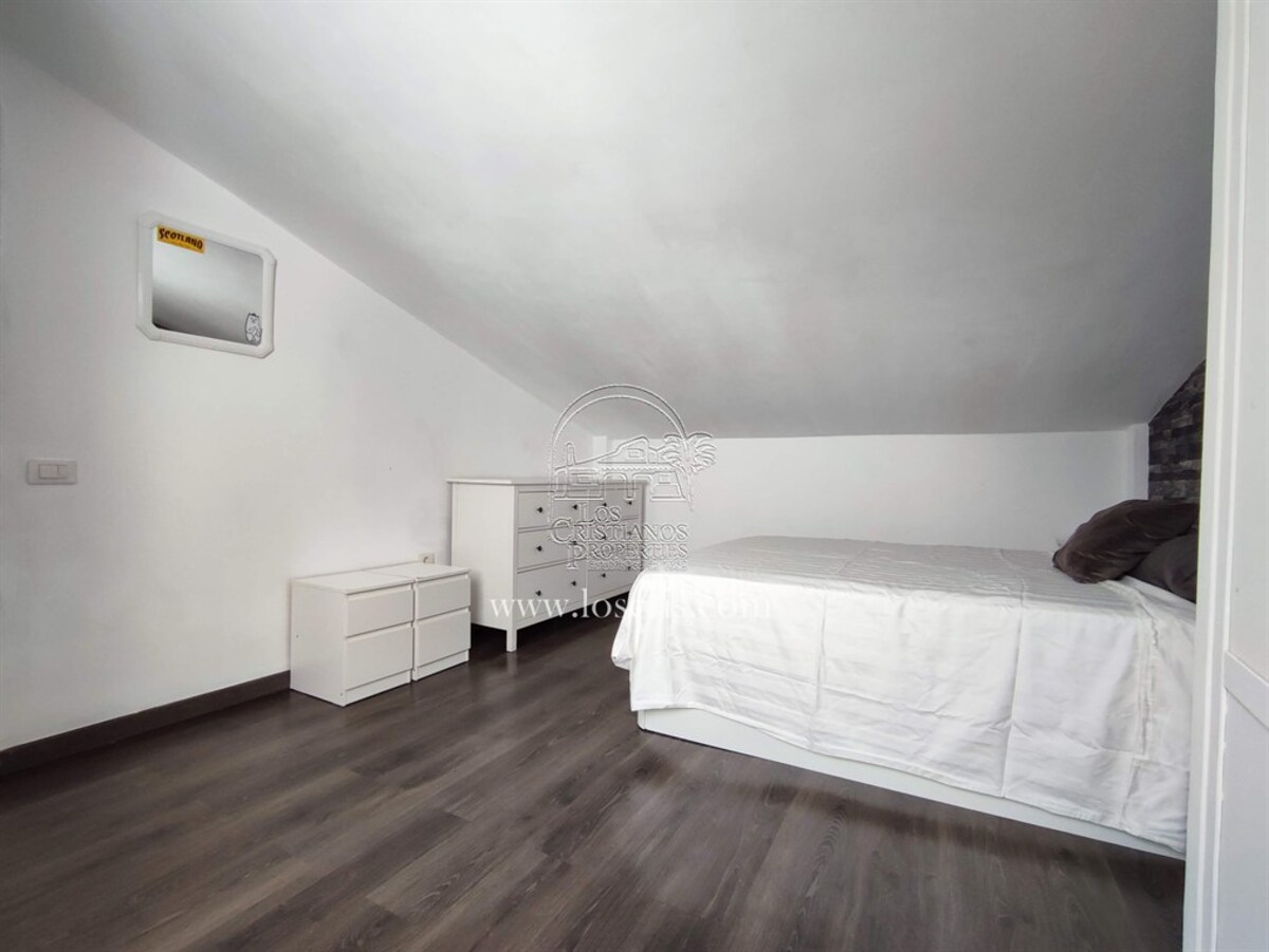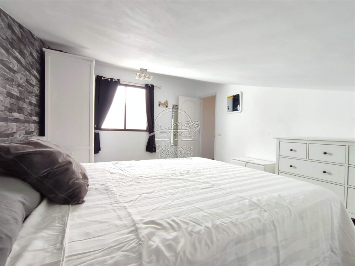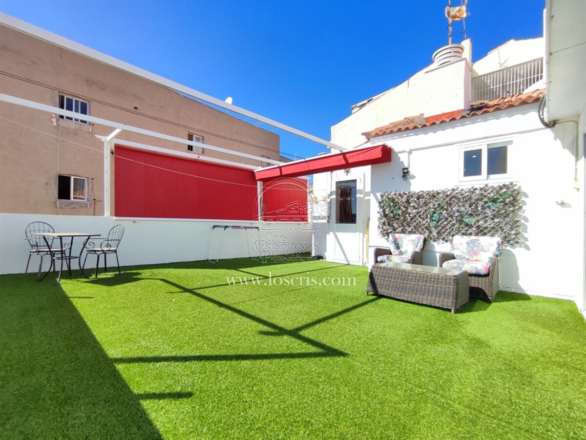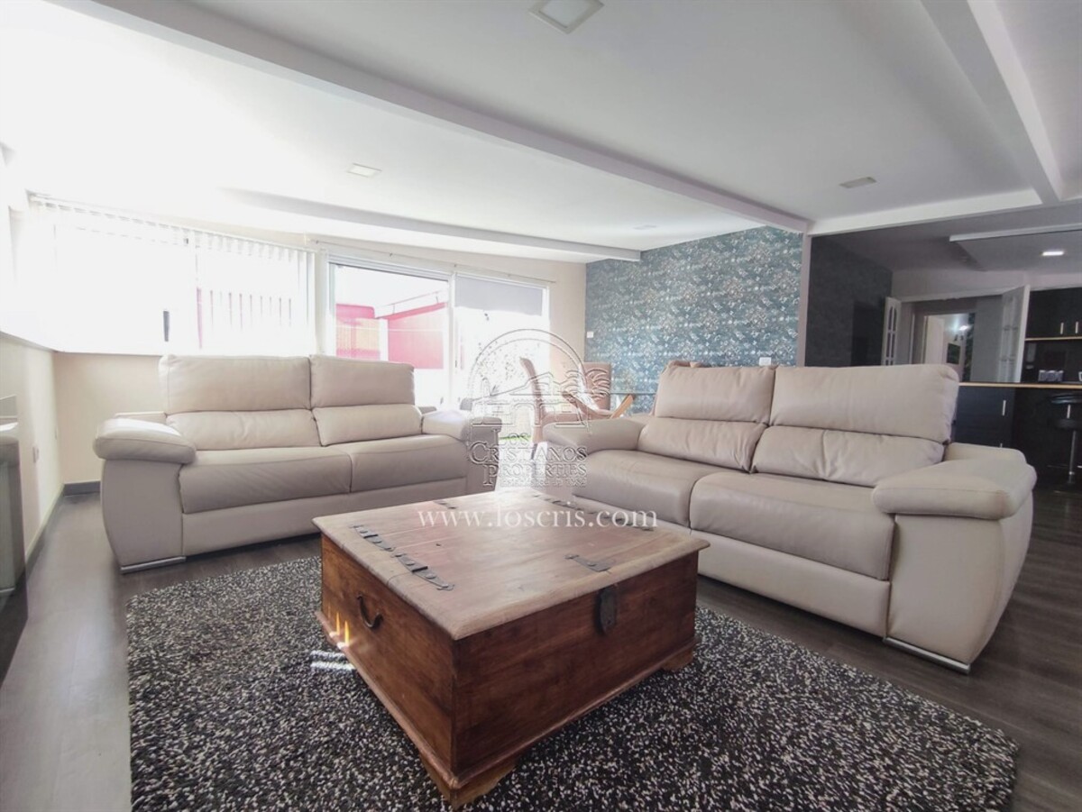 This is a very rare apartment, being located right in the centre of Los Cristianos and having three spacious bedrooms! The apartment also has two luxurious bathrooms and a large lounge and open-plan, modern spacious kitchen. Being on the third floor of the complex, it boasts partial sea views and you can see the rest of Los Cristianos. There is a huge terrace which has been nicely furnished with relaxing chairs. The whole apartment has been very tastefully renovated and is being sold partially furnished with good quality furniture. The main advantage with this apartment is the accessibility to the beach, shops and restaurants.